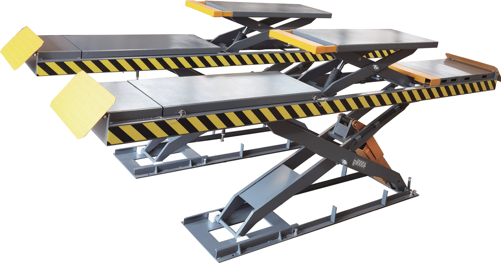 Elevador de coches tipo tijera principal-auxiliar empotrado
